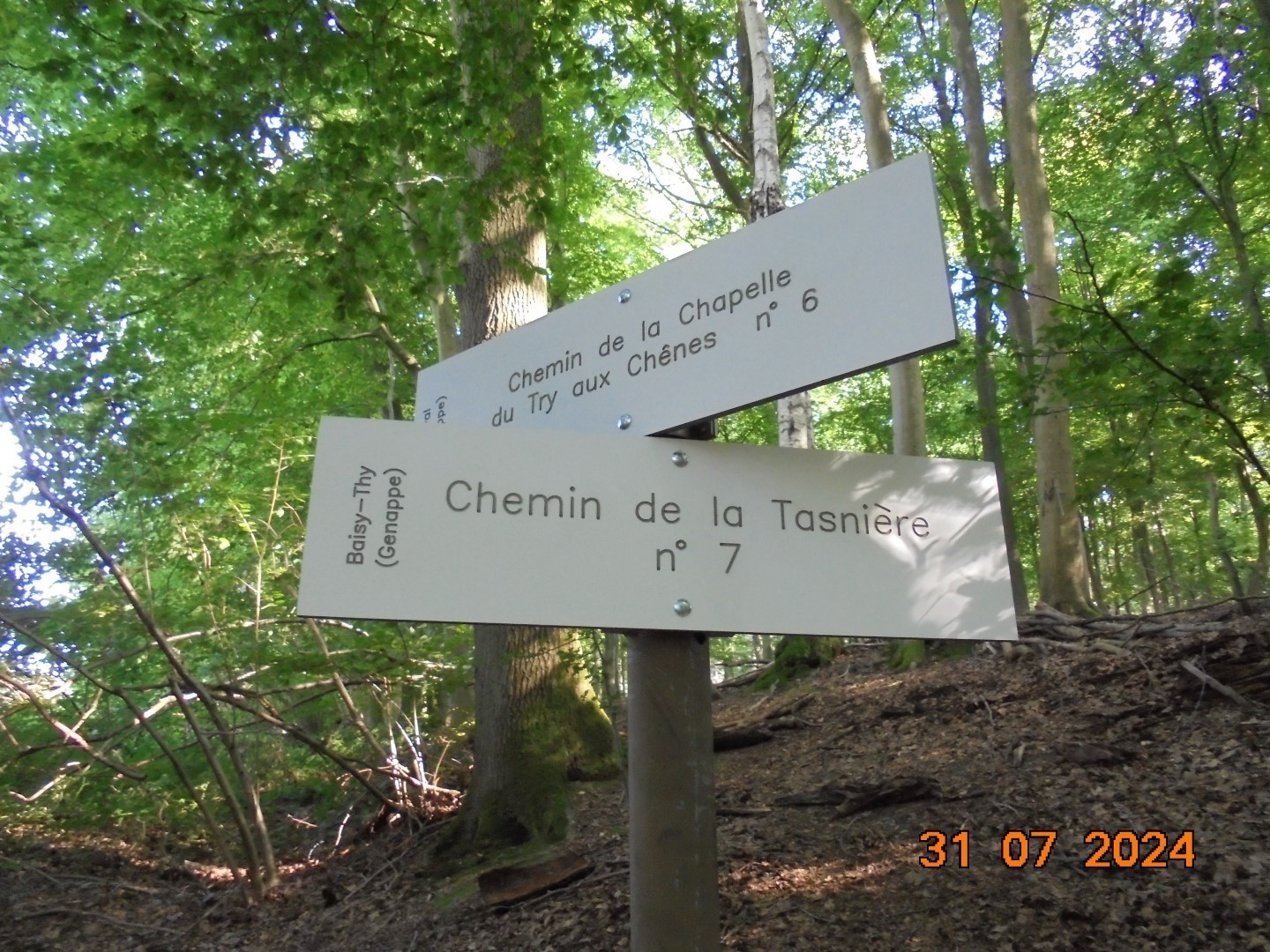 Sentier de la Drève n° 112, au croisement avec le chemin de Thy n° 12 |