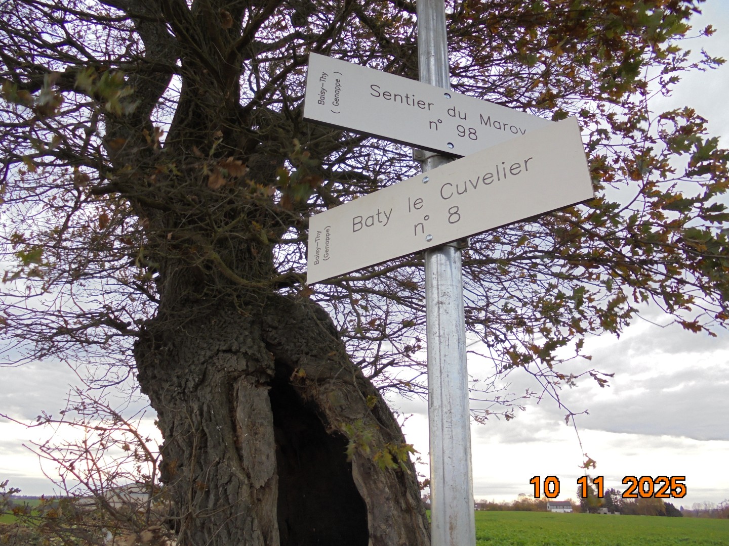 Baty Le Cuvelier n° 8 à côté de l'arbre isolé "Le Socqué" au croisement du sentier du Maroy n° 98 |